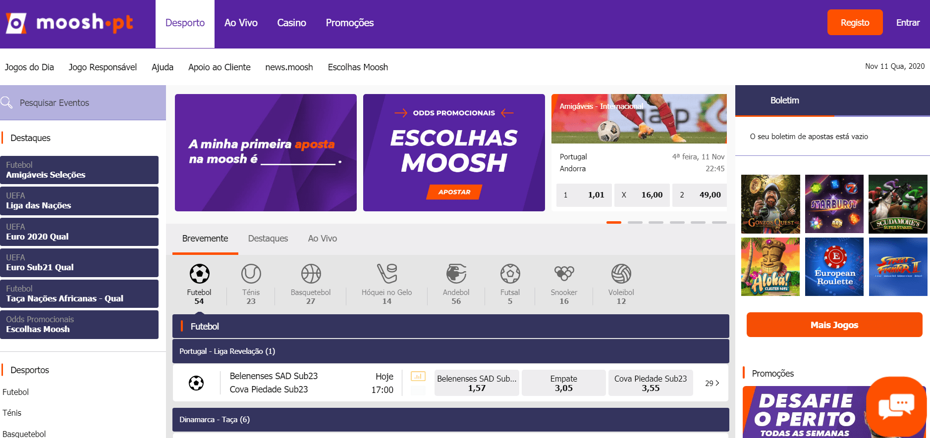 A Moosh PT iniciou operações em Portugal em 2020, após obter licença do SRIJ, oferecendo apostas desportivas e casino online.