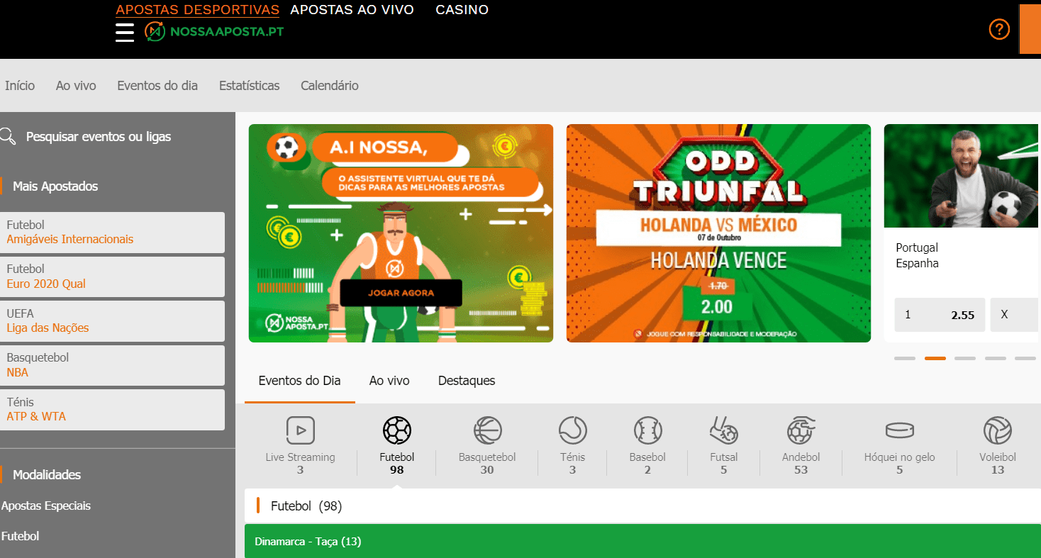 A Nossa Aposta, 100% portuguesa, oferece um site organizado e responsivo, permitindo apostas desportivas fáceis e seguras em qualquer dispositivo.